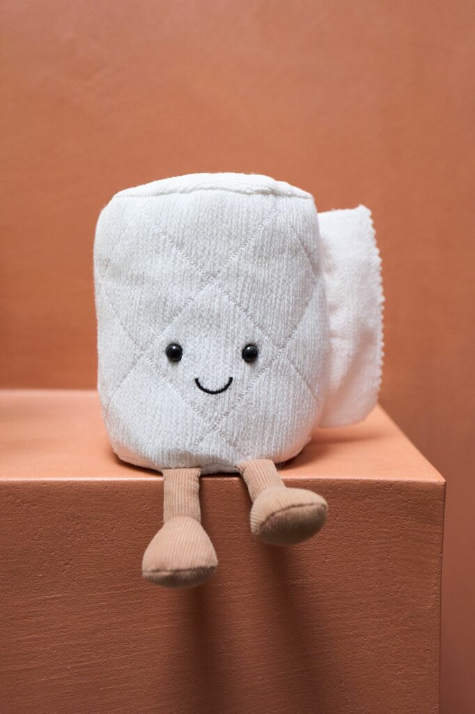 Ici, le regard s’attarde sur les aspérités du béton, volontairement conservées, qui donnent du relief à la surface. Les arêtes des WC et des volumes maçonnés, nettes et précises, viennent structurer l’ensemble et contrastent avec la douceur visuelle de la teinte.