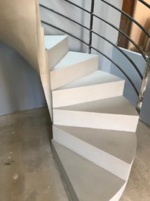 Somptueux escalier à paillasse hélicoïdal en béton ciré couleur gris souris